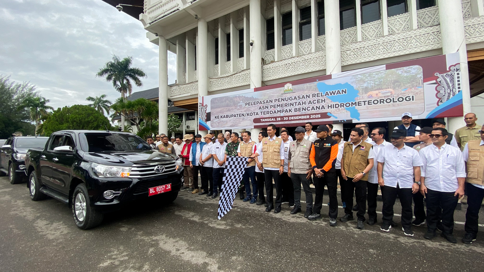 Pelepasan relawan ASN dilakukan secara resmi oleh Sekretaris Daerah Pemerintah Aceh, M. Nasir, Minggu, (28/12/2025) dalam apel penugasan di lingkungan Pemerintah Aceh, sebelum para relawan diberangkatkan ke lokasi tugas.