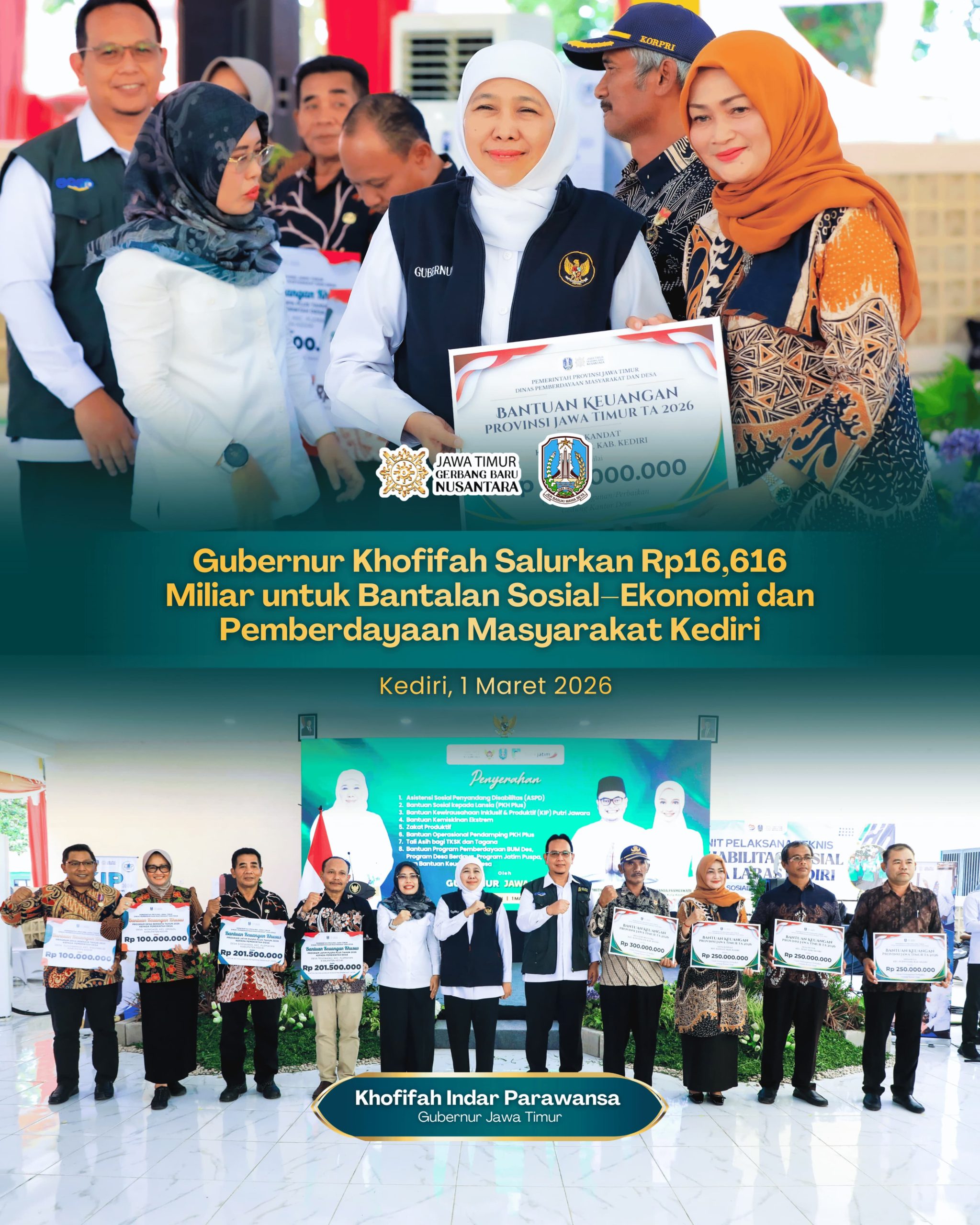 Di Kabupaten Kediri total bantuan yang disalurkan mencapai Rp15.061.879.000, alokasi terbesar berasal dari Dinas Sosial Provinsi Jawa Timur sebesar Rp5,577 miliar, yang menyasar Program Keluarga Harapan Plus (PKH Plus) sebanyak 1.988 keluarga, Bantuan Sosial Penyandang Disabilitas (ASPD) untuk 168 jiwa, bantuan KIP PPKS Jawara, serta Bantuan Operasional dan Tali Asih bagi 170 jiwa yang meliputi SDM PKH Plus, Pendamping Disabilitas, TKSK, dan TAGANA.