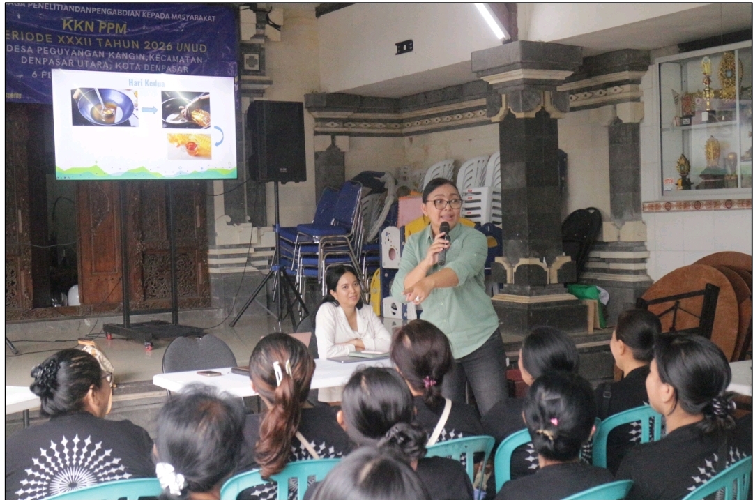 Kegiatan ini merupakan salah satu program kerja mahasiswa KKN Universitas Udayana Periode XXXII Tahun 2026 di Desa Peguyangan Kangin yang sejalan dengan tema besar KKN tahun ini, yaitu pengolahan sampah berkelanjutan berbasis pemberdayaan masyarakat. Melalui program tersebut, mahasiswa berupaya mendorong masyarakat untuk lebih peduli terhadap pengelolaan limbah rumah tangga melalui pengurangan pemborosan pangan serta pemanfaatan minyak jelantah menjadi produk yang masih bernilai guna.