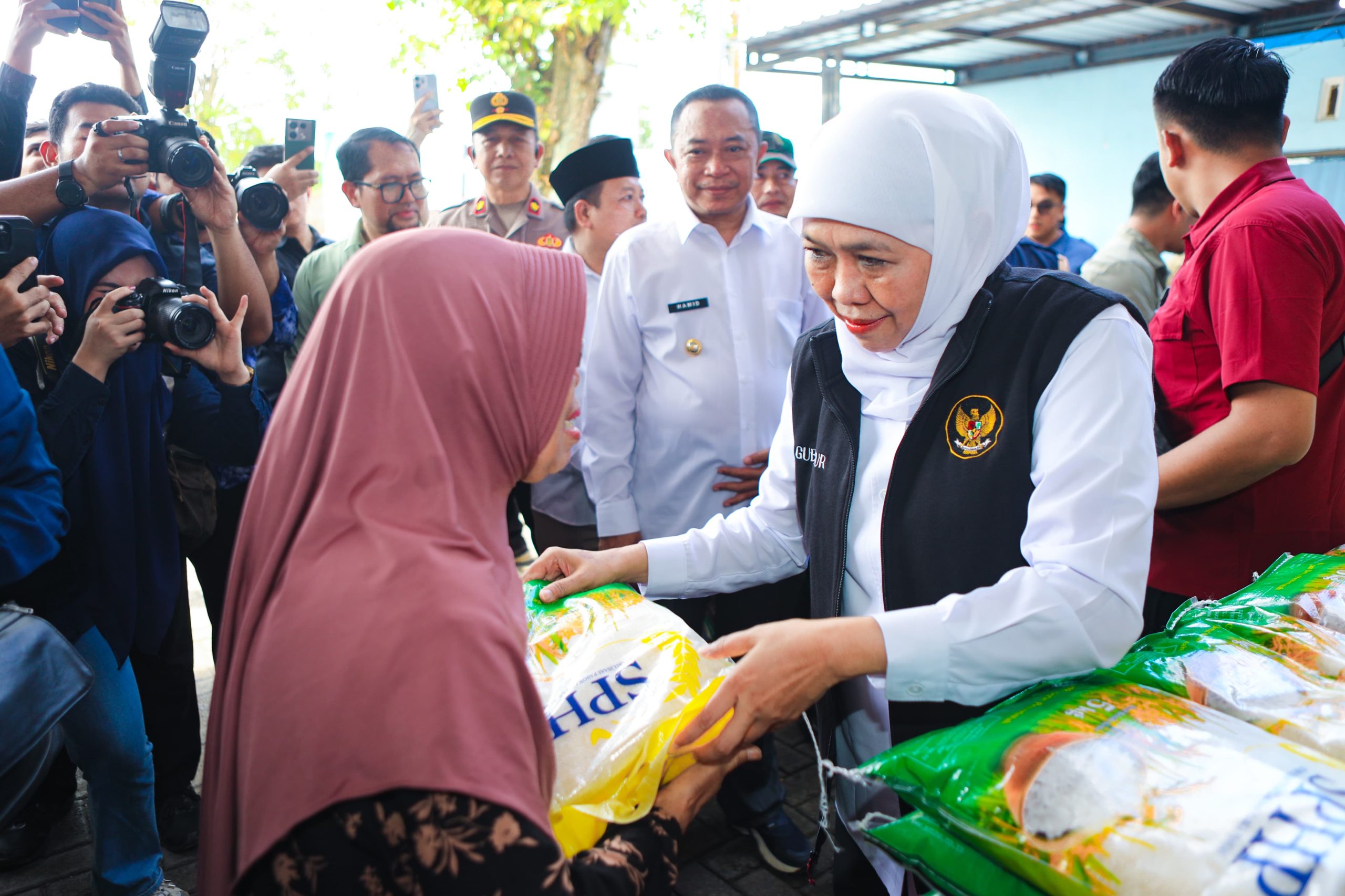 Lentera Post – BONDOWOSO, 2 NOVEMBER 2025, Gubernur Jawa Timur Khofifah Indar Parawansa menggelar Pasar Murah di Kecamatan Tenggarang, Kabupaten Bondowoso, Sabtu (1/11). Kegiatan ini pun disambut antusias oleh masyarakat sejak pagi.
