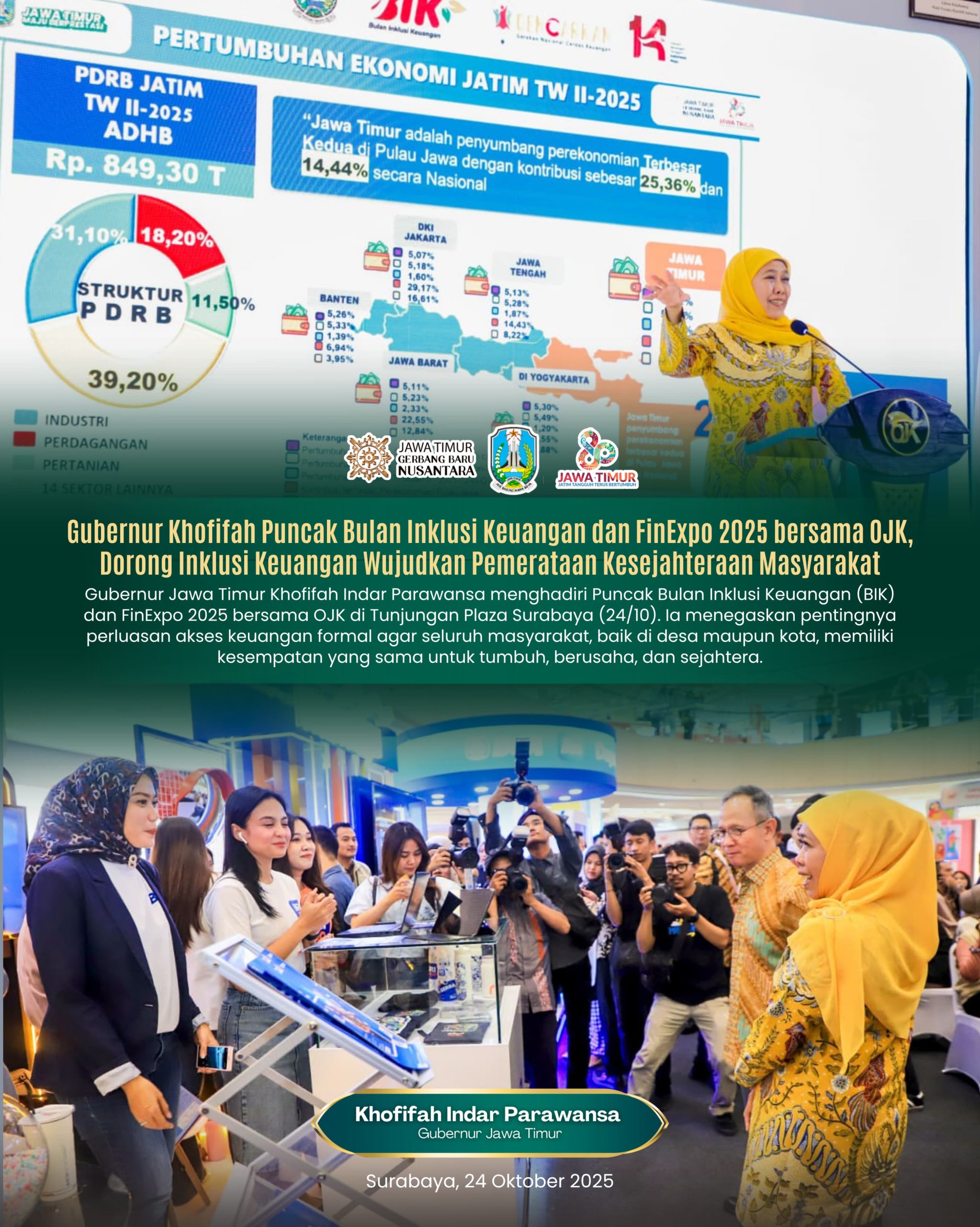 Sementara itu, Ketua Dewan Komisioner OJK Mahendra Siregar menyampaikan apresiasi atas kolaborasi strategis yang dibangun bersama Pemerintah Provinsi Jawa Timur. Menurutnya, penyelenggaraan Bulan Inklusi Keuangan di Surabaya menegaskan peran Jawa Timur sebagai motor penggerak ekonomi nasional.