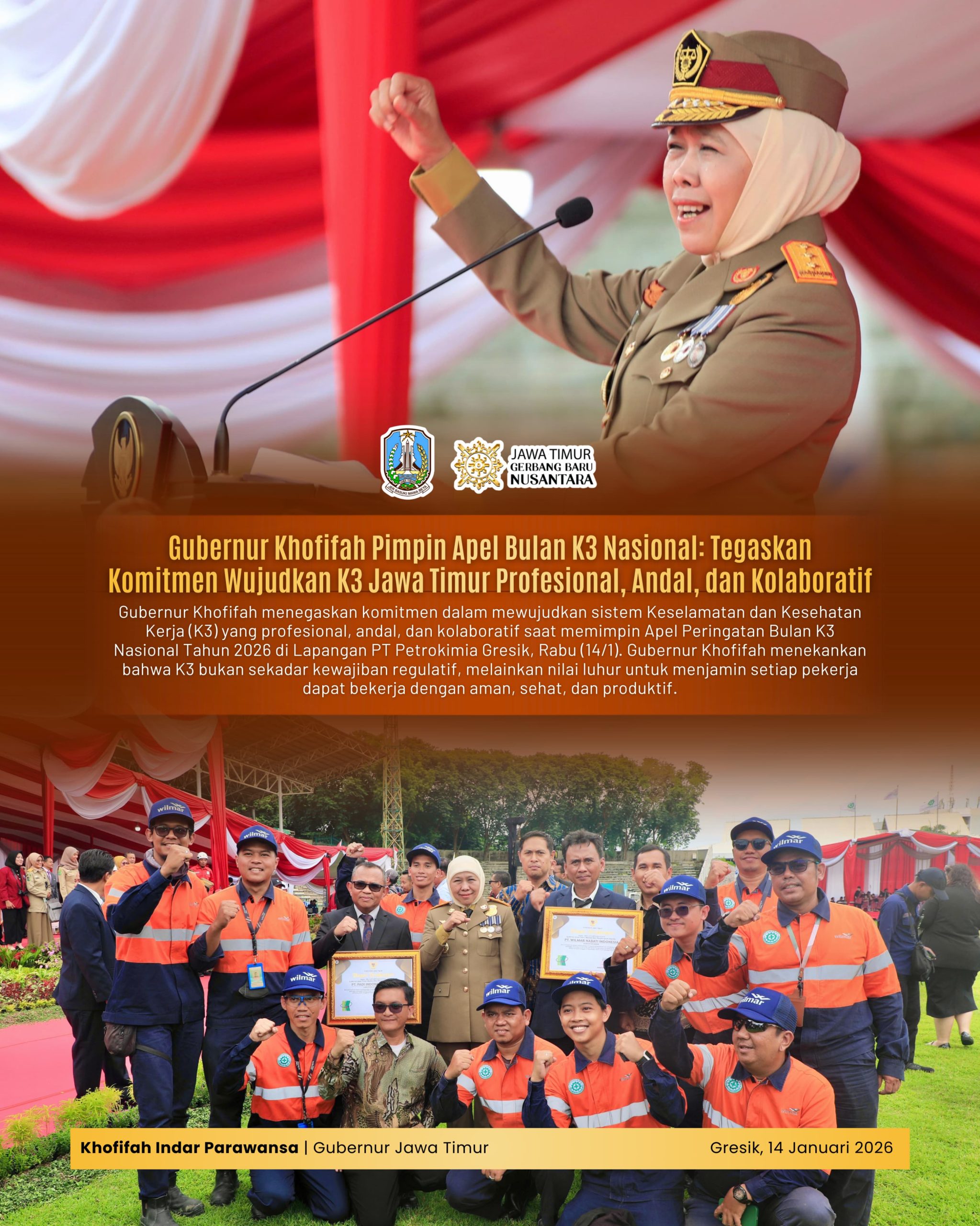 “Keselamatan dan kesehatan kerja bukan sekadar kewajiban regulatif, melainkan nilai luhur yang menjamin hak setiap pekerja untuk pulang dengan selamat. Karena itu, Pemprov Jawa Timur berkomitmen untuk terus memperkuat budaya K3 yang berkelanjutan melalui kolaborasi seluruh pemangku kepentingan,” kata Khofifah.