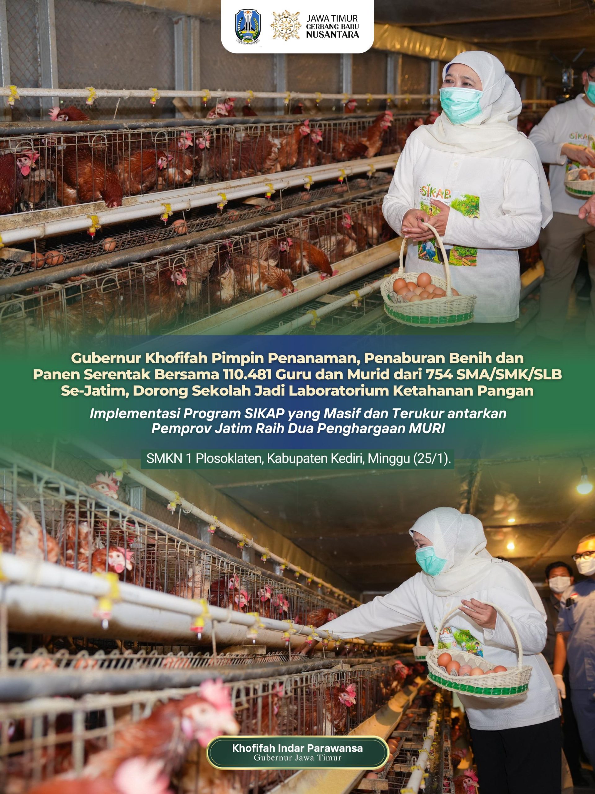 Gubernur Khofifah menjelaskan bahwa kegiatan tersebut merupakan bagian dari penguatan Program Sekolah Inovatif Ketahanan Pangan (SIKAP) yang dikembangkan Pemerintah Provinsi Jawa Timur sebagai model pendidikan kontekstual dan berkelanjutan.