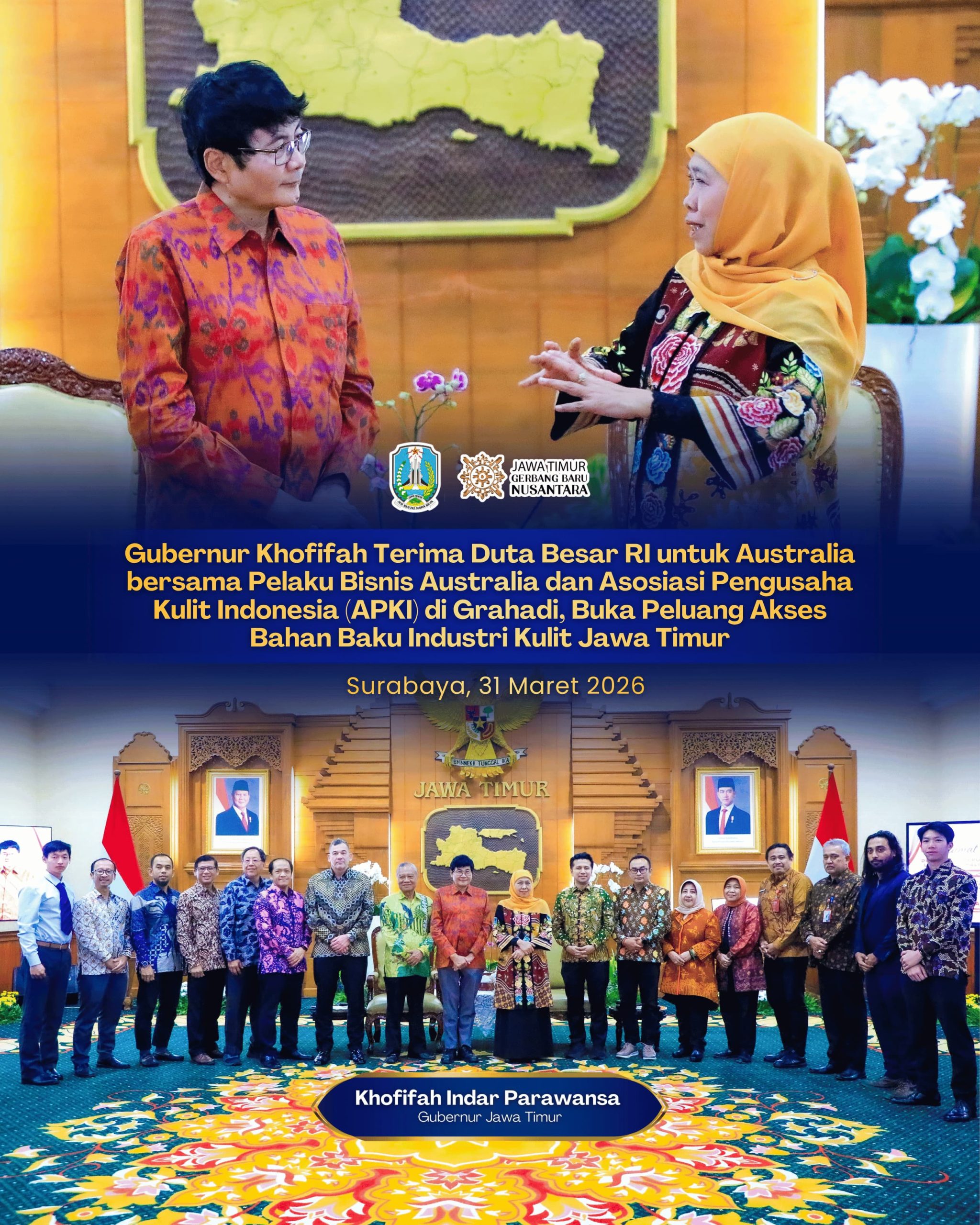 Orang nomor satu di Jatim ini menegaskan Jawa Timur siap menjadi mitra strategis Australia di Indonesia dengan keunggulan pada sektor industri, perdagangan, dan konektivitas regional. Pemerintah Provinsi Jawa Timur berharap momentum ini dapat ditindaklanjuti secara konkret dan berkelanjutan, khususnya dalam pengembangan industri kulit di Jawa Timur.
