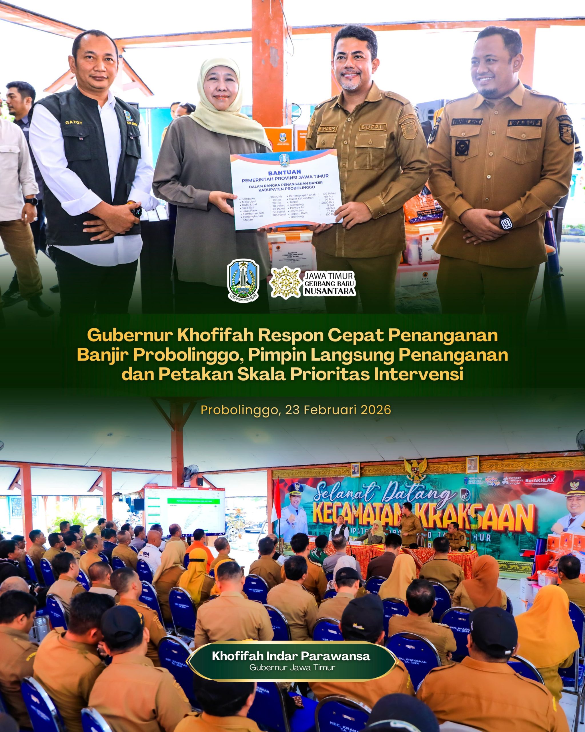 Gubernur Khofifah mengatakan, Pemprov Jatim bergerak cepat bersama seluruh jajaran Pemkab Probolinggo untuk memastikan keselamatan warga serta percepatan penanganan pasca banjir.