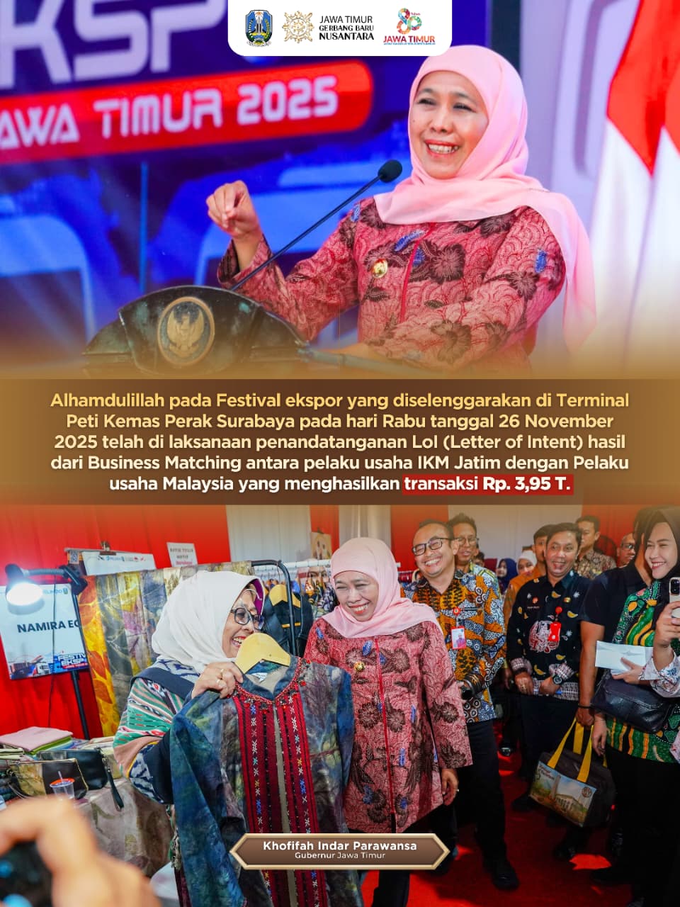 IKM Jatim Raih Kesepakatan LoI Rp 3,95 Triliun dengan Malaysia, Gubernur Khofifah Sambut Optimistis Pertumbuhan Ekspor