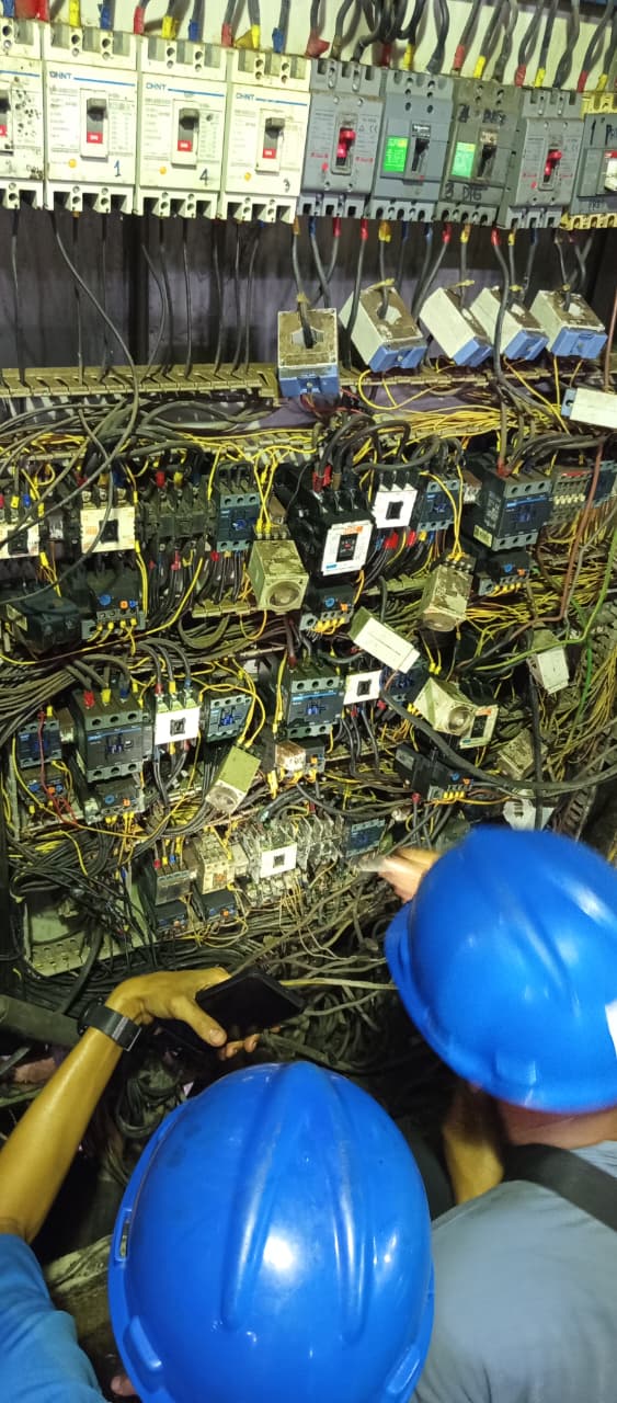 Melakukan pengecekan dan identifikasi komponen pada panel kontrol listrik, meliputi MCCB, kontaktor, dan sistem pengkabelan guna memastikan sistem bekerja dengan baik serta aman dalam operasional.