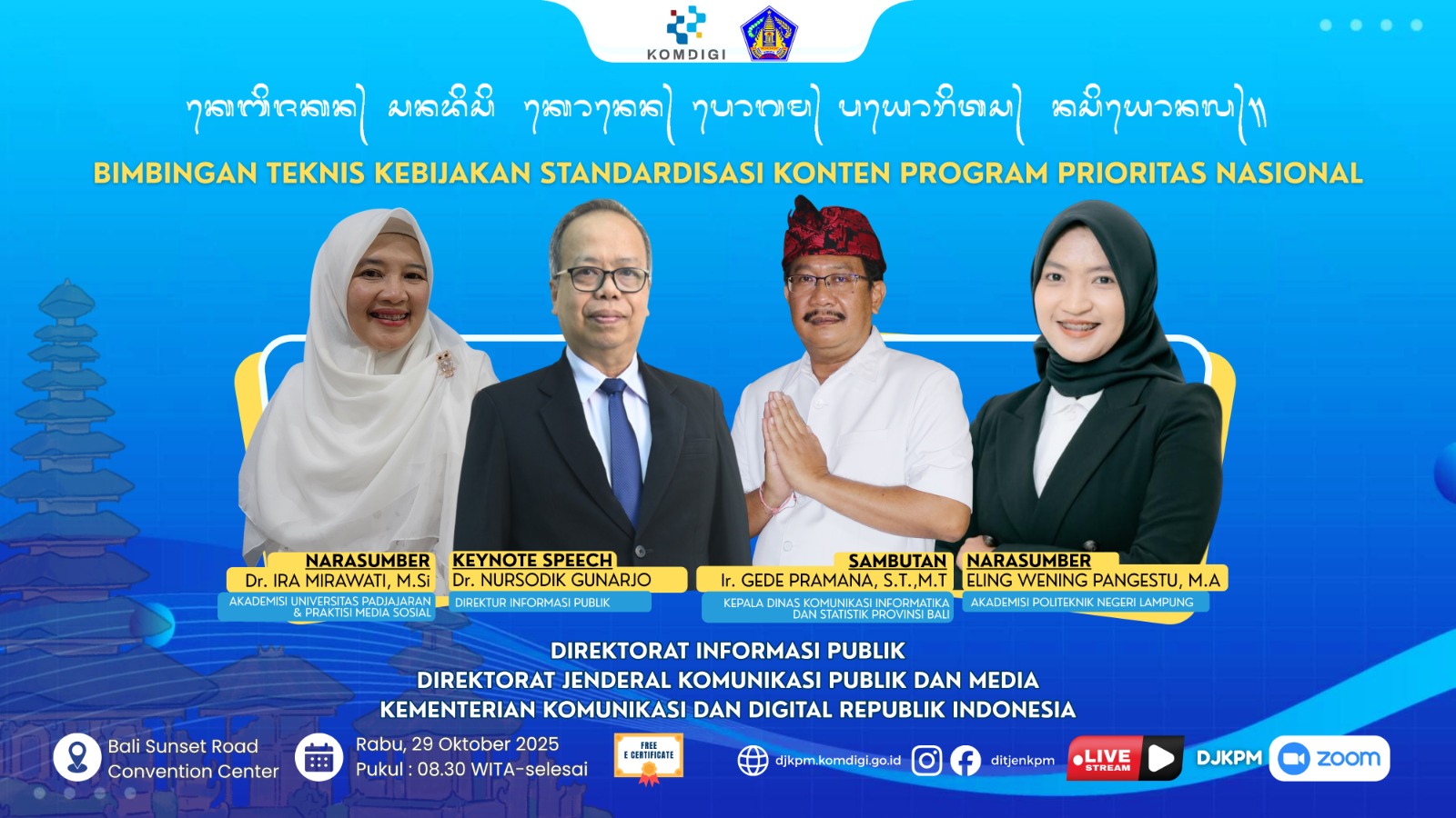 Lentera Post — Komunikasi publik yang akurat dan beretika menjadi fondasi penting dalam membangun kepercayaan masyarakat terhadap pemerintah. Isu strategis ini akan menjadi fokus pembahasan dalam Bimbingan Teknis (Bimtek) Kebijakan Standardisasi Konten Program Prioritas Nasional yang digelar di Denpasar, Bali, Rabu (29/10/2025).