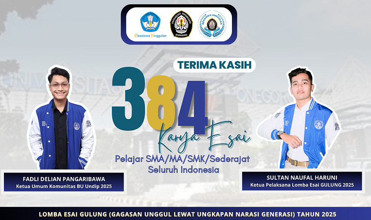 Lentera Post – Semarang (7 November 2025) Komunitas Beasiswa Unggulan Universitas Diponegoro (BU Undip) sukses menyelenggarakan kegiatan tahunan Lomba Esai GULUNG (Gagasan Unggul Lewat Ungkapan Narasi Generasi) Tahun 2025 yang diikuti oleh ratusan pelajar SMA/MA/SMK sederajat dari seluruh Indonesia.