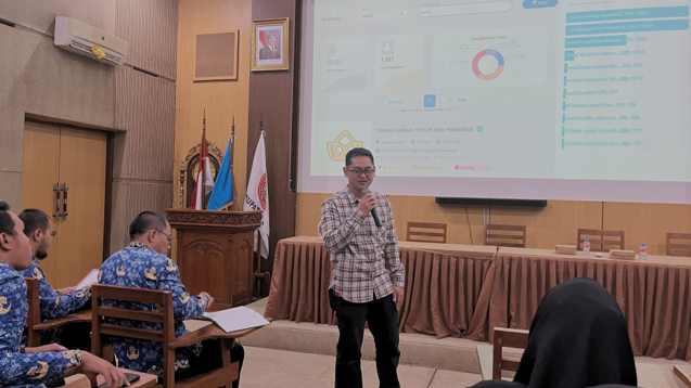 Kegiatan pengabdian masyarakat ini adalah bentuk kerjasamanya antara tim Departemen Geografi, Fakultas Ilmu Sosial dan Ilmu Politik, Universitas Negeri Semarang dengan MGMP Geografi Kabupaten Jepara. Pengabdian ini bertujuan agar guru mampu menulis, mencari penerbit jurnal dan memasukkan artikel jurnal ilmiah ke Open Journal System (OJS). Pendampingan ini diawali oleh penjelasan materi Teknik Menulis Artikel Ilmiah yang Terstruktur, Akademis dan Siap Publikasi. “Menulis bukan hanya sekedar mengeluarkan isi pikiran tetapi juga ada seni tersendiri agar naskah artikel jurnal bisa menarik dan potensi untuk diterbitkan, Tentu dalam prosesnya juga harus mengikuti prosedur yang berlaku”, Ucap Prof. Dr. Juhadi, M.Si. Materi kedua berupa penjelasan searching jurnal nasional terakreditasi SINTA dan Submit Jurnal. “Menerbitkan naskah perlu proses searching penerbit jurnal karena terdapat ribuan dengan berbeda kualitas sehingga perlu dicek dengan kriteria tertentu, seperti tingkat indeks, ruang lingkup keilmuan, frekuensi terbit, biaya penerbitan, aturan skor plagiasi dan sebagainya. Selanjutnya submit jurnal harus melalui Open Journal System (OJS) sesuai prosedur yang berlaku, Ucap Pradika Adi Wijayanto, S.Pd, M.Pd”. Dilanjutkan tanya jawab kedua materi tersebut