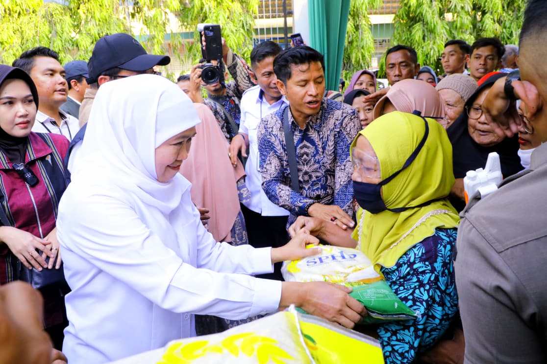 Gubernur Jawa Timur Khofifah Indar Parawansa hadir langsung untuk memastikan harga bahan pokok yang dijual benar-benar lebih murah dibanding harga pasar maupun Harga Eceran Tertinggi (HET).