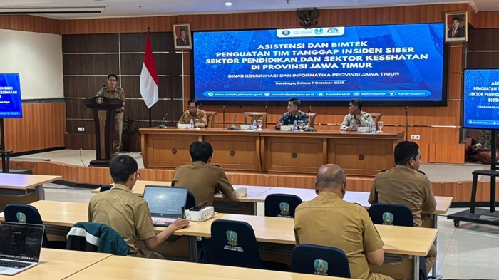 Surabaya, LenteraPost – Pemerintah Provinsi Jawa Timur melalui Dinas Komunikasi dan Informatika (Diskominfo) bekerja sama dengan Badan Siber dan Sandi Negara (BSSN) menyelenggarakan Asistensi dan Bimbingan Teknis (Bimtek) Penguatan Tim Tanggap Insiden Siber (TTIS) untuk sektor pendidikan dan kesehatan. Kegiatan ini digelar di Ruang Anjasmara, Kantor Diskominfo Jatim, pada Selasa (7/10/2025).