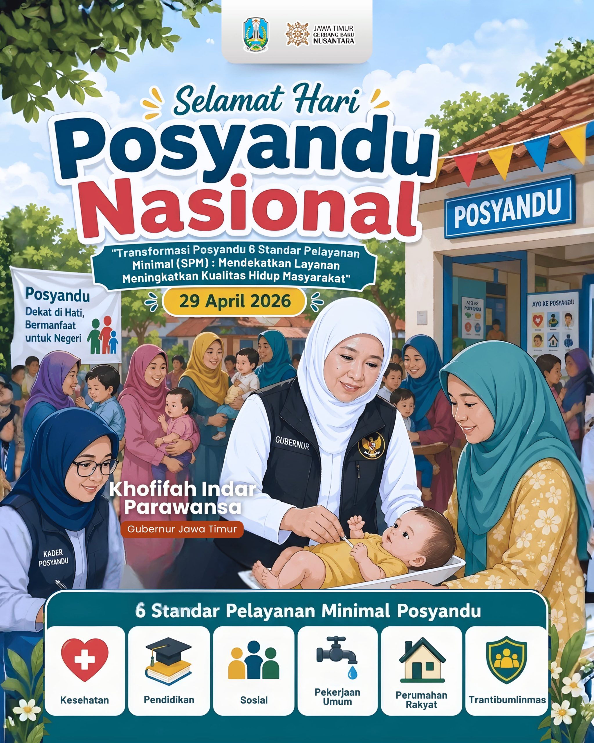 Menurut Gubernur Khofifah, Posyandu merupakan lembaga kemasyarakatan desa/kelurahan (LKD/LKK) yang memiliki peran strategis sebagai wadah partisipasi masyarakat sekaligus mitra pemerintah dalam perencanaan, pelaksanaan, hingga pengawasan pembangunan di tingkat lokal.