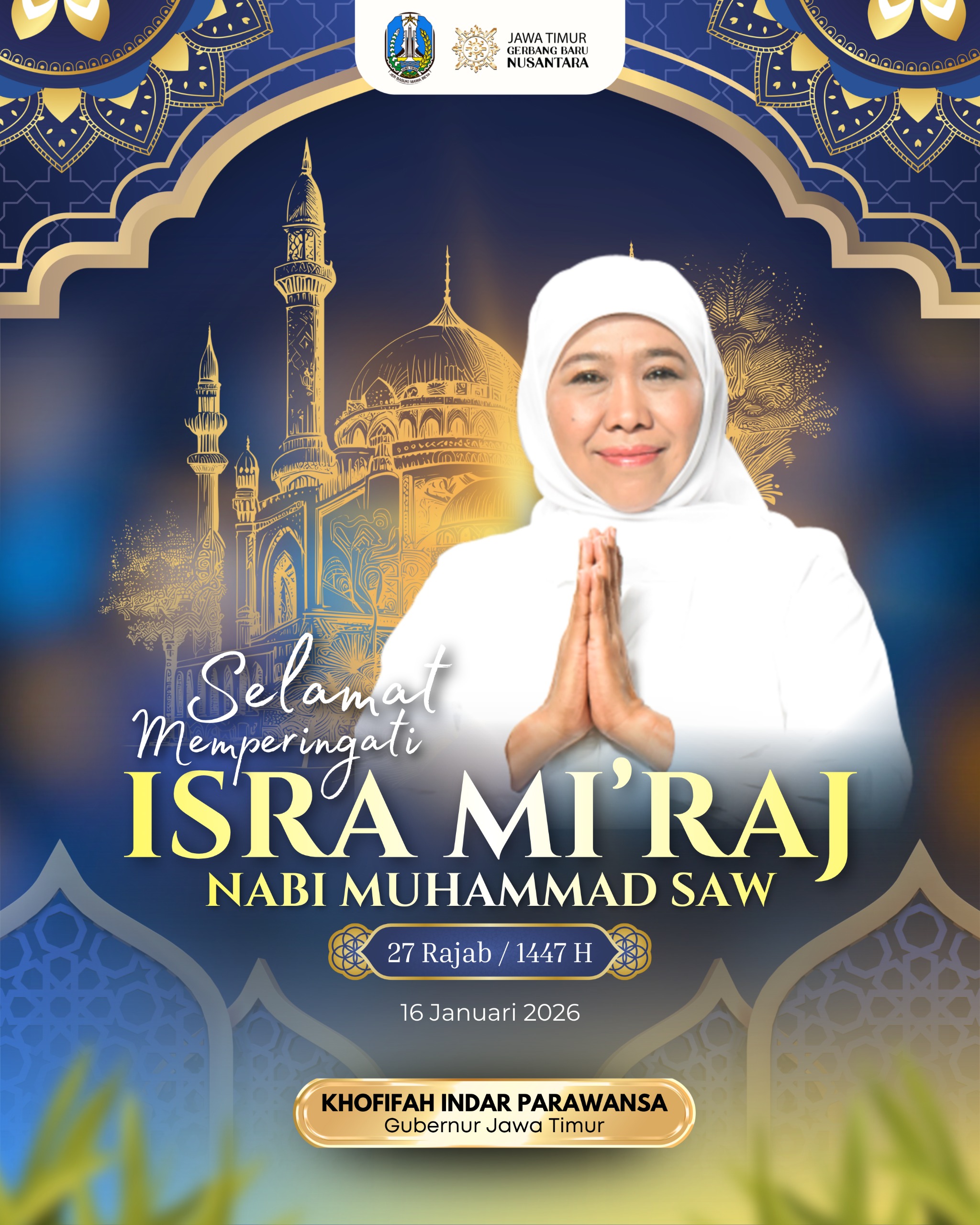 Lentera Post – SURABAYA, 16 JANUARI 2026, Gubernur Jawa Timur Khofifah Indar Parawansa mengajak seluruh masyarakat menjadikan peringatan Isra’ Mi’raj Nabi Muhammad SAW 1447 H yang jatuh pada Jumat (16/1) sebagai momentum spiritual untuk meningkatkan kedisiplinan ibadah sekaligus keimanan dan ketaqwaan yang tercermin dalam perilaku sehari-hari.