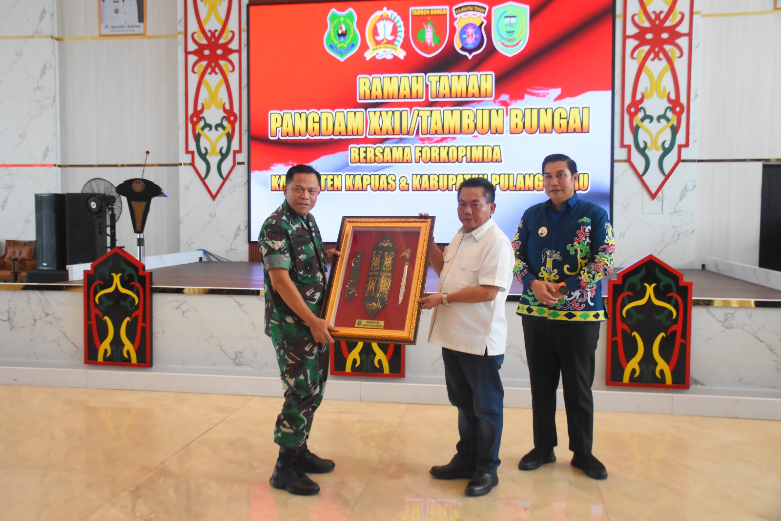 “Saya menyampaikan terima kasih kepada Pemerintah Kabupaten Kapuas dan Pulang Pisau atas dukungan nyata terhadap pembangunan Makodim, Koramil, ruang terbuka hijau, serta hibah sarana pendukung lainnya. Sinergi ini sangat menunjang tugas TNI di daerah,” ujar Pangdam.