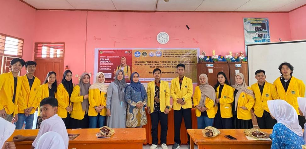 Lentera Post – Program Studi Informatika Fakultas Teknik Komputer Universitas Cokroaminoto Palopo (UNCP) melaksanakan Seminar Literasi Digital bertema “Edukasi Anti Perundungan Siber dan Literasi Empati Digital” di SMPN 6 Palopo pada Kamis, 27 November 2025. Kegiatan ini diikuti oleh 35 siswa-siswi, dan bertujuan memperkuat pemahaman pelajar mengenai penggunaan media digital secara aman, bertanggung jawab, serta bebas dari prakt ik perundungan siber (cyberbullying) yang semakin banyak terjadi di kalangan remaja